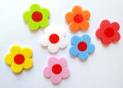 Kvetinka sa aplikuje prilepením ako dekorácia na stuhy, vázičky, rámiky detských obrázkov... cena za 1bal = 100ks / 10bal