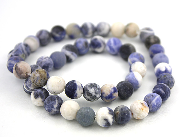 Korálky z mineráu Sodalit. Gulička má priemer 8mm, v strede má vyvŕtanú dierku. Na navliekanie môžete použiť elastický vlasec alebo pevný vlasec.