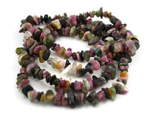 Korálky z mineráu Turmalín. Úlomky majú veľkosť cca 0,5-1cm, v strede majú vyvŕtanú dierku. Na navliekanie môžete použiť elastický vlasec alebo pevný vlasec.