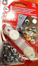 Gombíky sú vhodné na stredne hrubé látky. Súčasťou balenia je aj aplikátor.