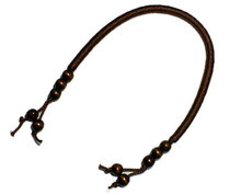 Textilné rúčky na tašky ukončené drevenými korálkami.