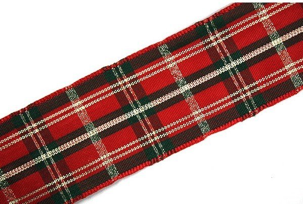 Stuha v typicky vianočných farbách má v okraji vlasec, ktorý zabezpečuje držanie požadovaného tvaru.